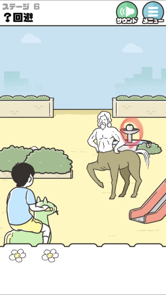 | ・主人公が乗っている遊具から花を『TAP』して入手。 | ・左上の花壇から花を『TAP』して入手。 |