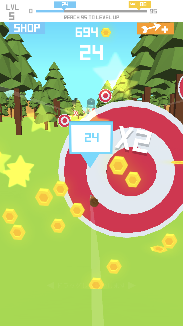 しかし、コインを集めて強度を重ねるにつれて、飛距離も伸びて的にも当てる楽しみや、