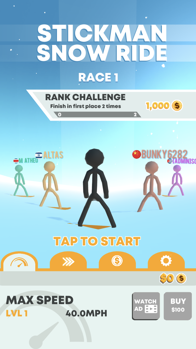 →Stickman Snow Ride アプリ SKINS解放 攻略