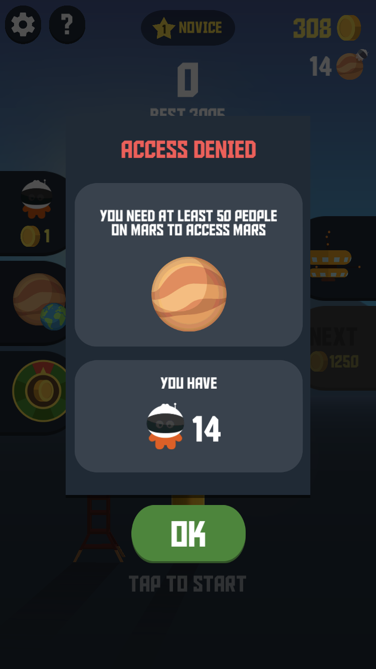 ある程度ロケットを強化すると、次の惑星へ行けるようになる