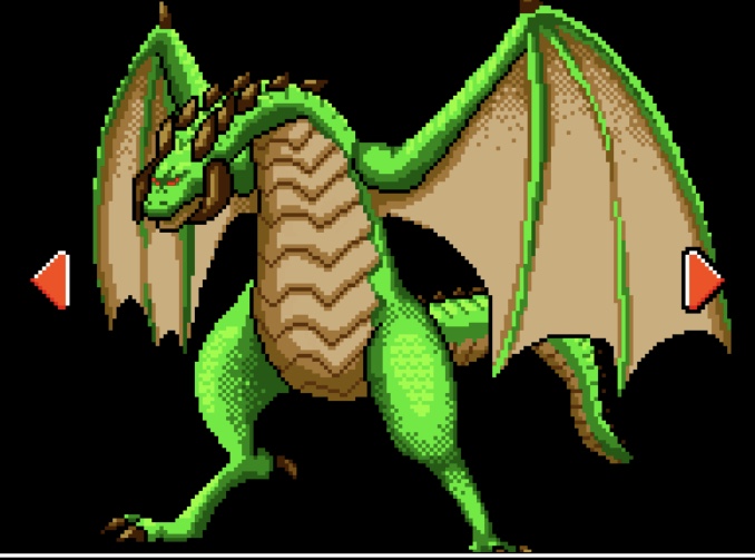 | ドラゴン族最強のモンスター。巨大な翼で空を自由に飛びまわり、口に鋭い牙、尖った爪を持つ。口からは高温の青い炎を吐き、勇者たちを焼き殺す。 | |