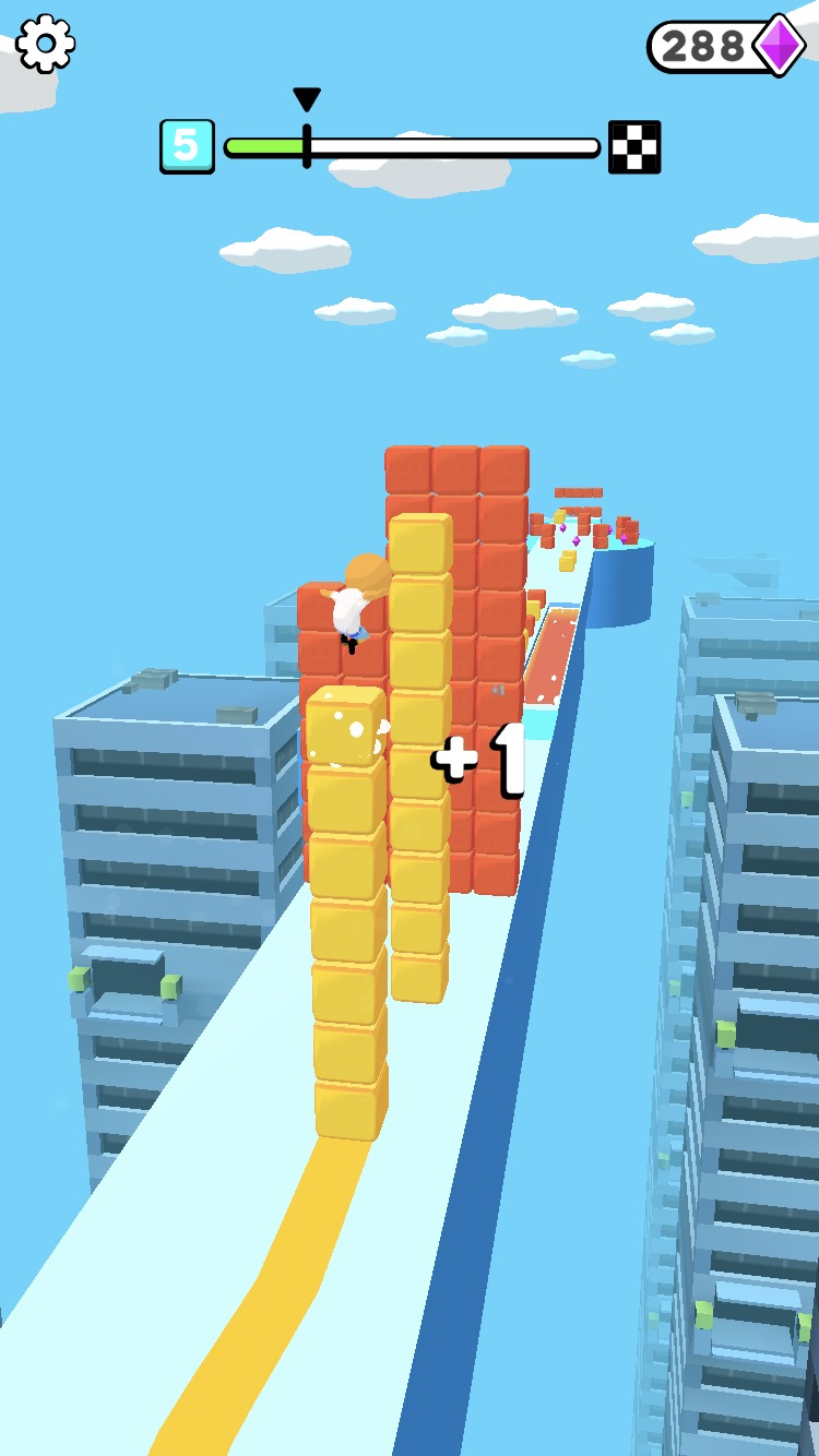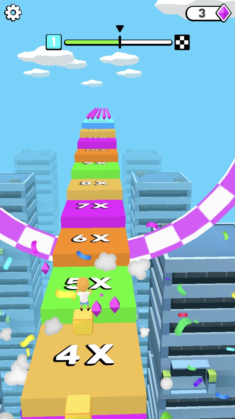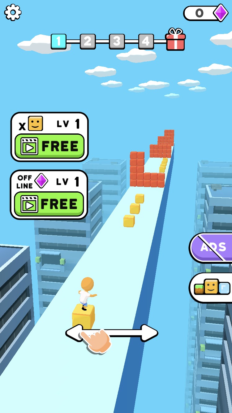 自動で前進するキャラを左右に動かし、ステージ上に配置されているキューブを獲得しながら障害物やマグマ地帯を通過していこう