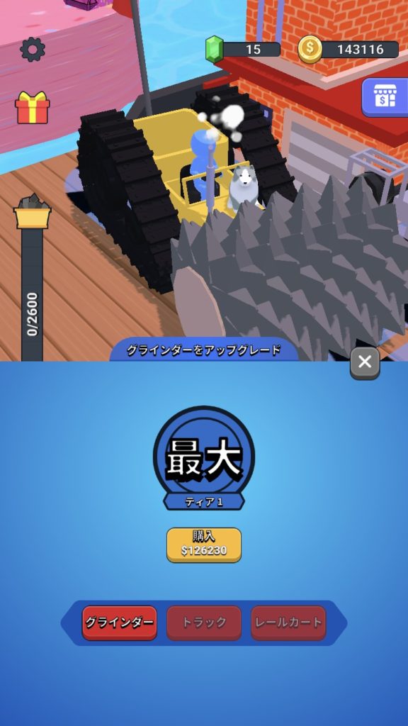 砕いた岩をカートに乗せて換金場所まで持って行き、入手したお金でロードローラー等を強化。
