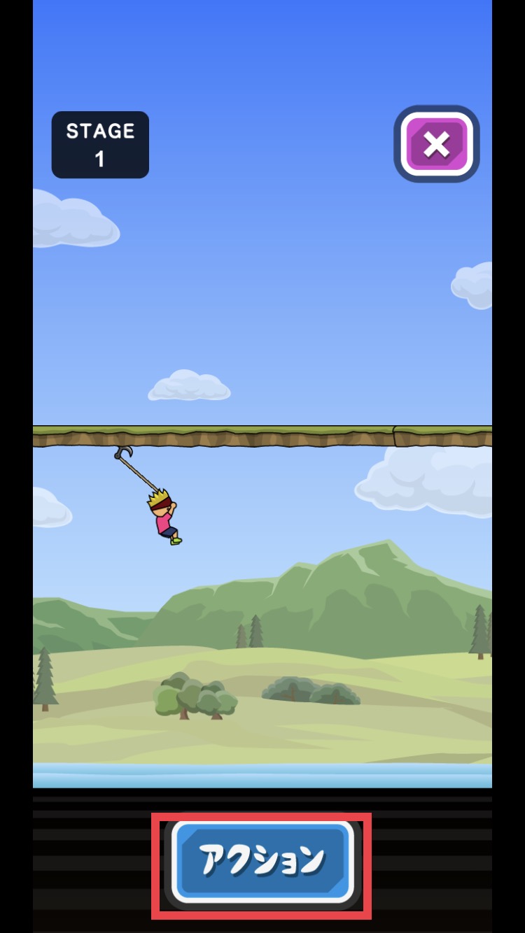 スタート直後、ワイヤーに一番近い雲の端と重なった状態でアクションボタンを『TAP』