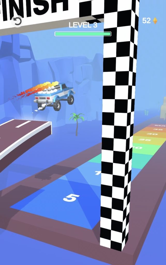 遠くへ飛べば飛ぶほど獲得できるダイヤが異なるので、ゴール間際は上の画像のように登り道を作り、高くそして遠くへ飛べるように準備しよう