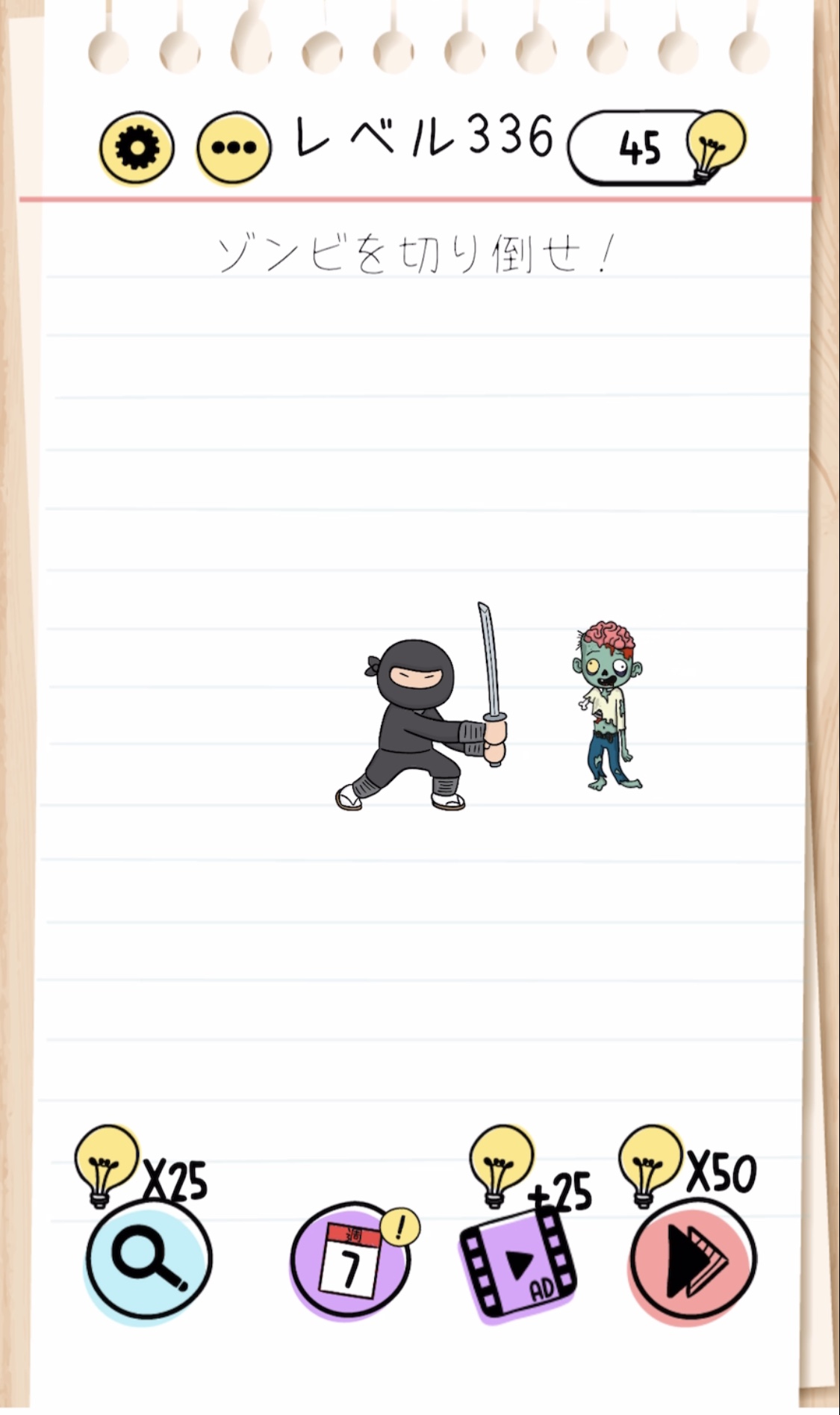 解決:ゾンビが来る方向に忍者をスワイプして刀を構える