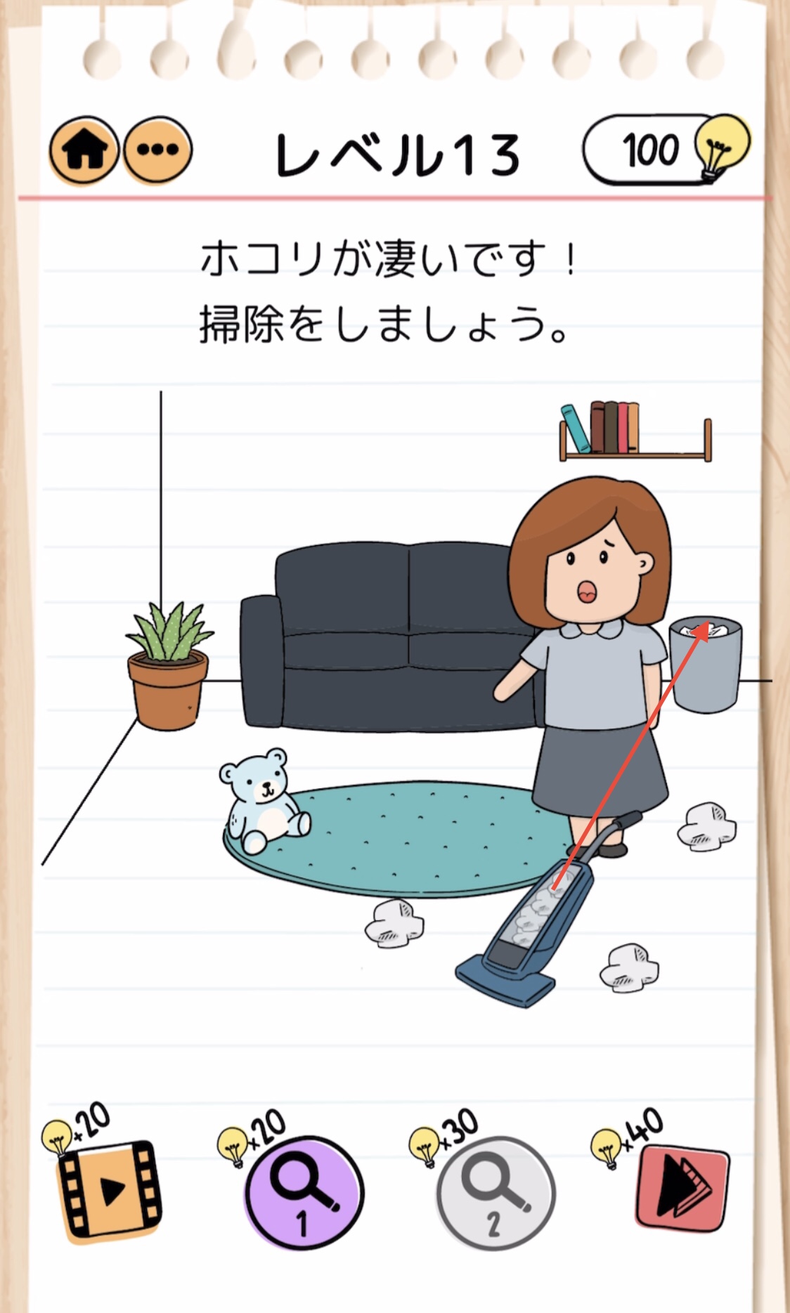 解答:掃除機で埃を吸い込む(4つ溜まると他のゴミが吸えない)