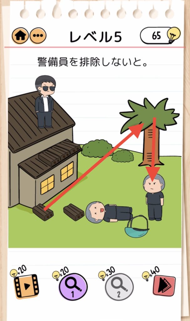 もう1度瓦を落として先ほど同様に警備員の頭上から落とす