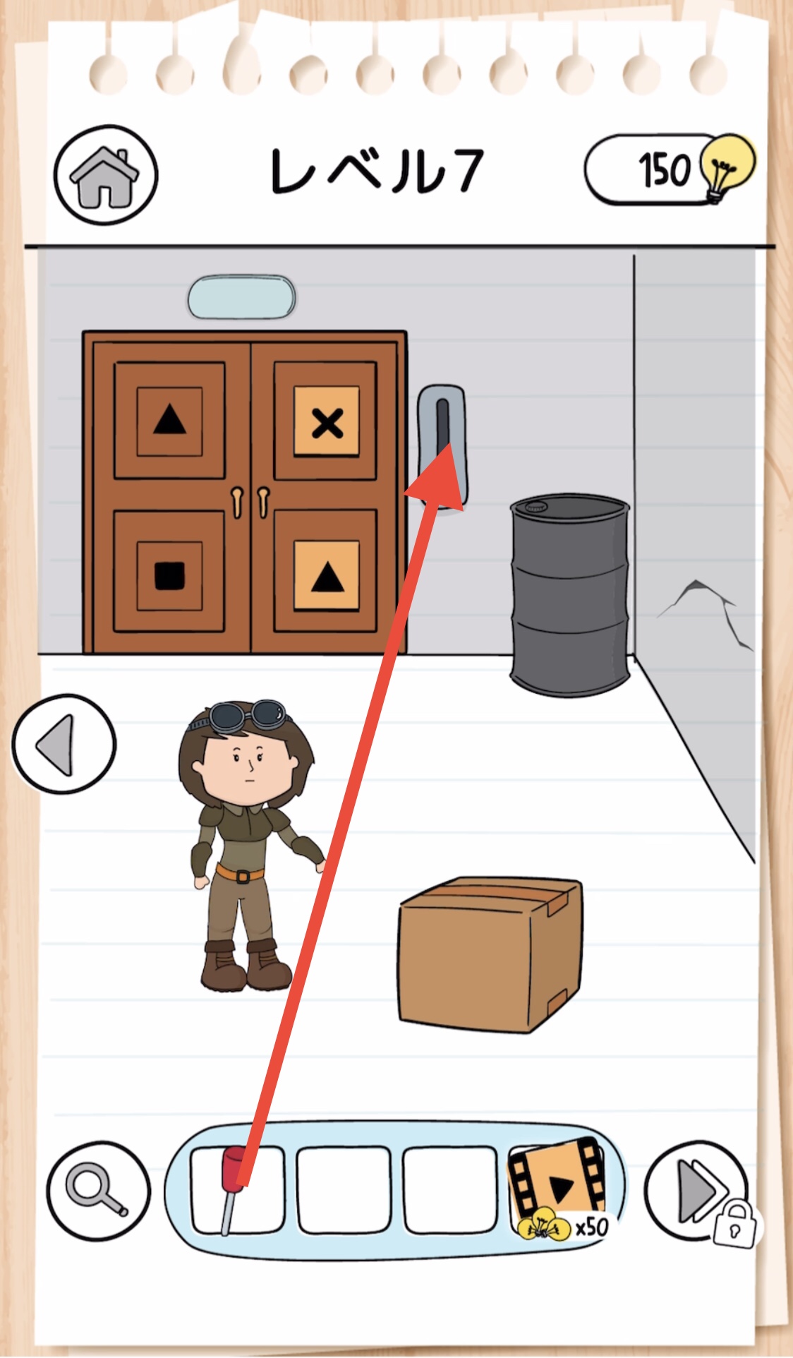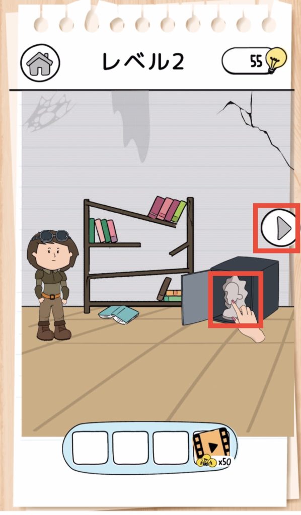 解答:金庫の中にある銅像をタップして回収後、→をタップ