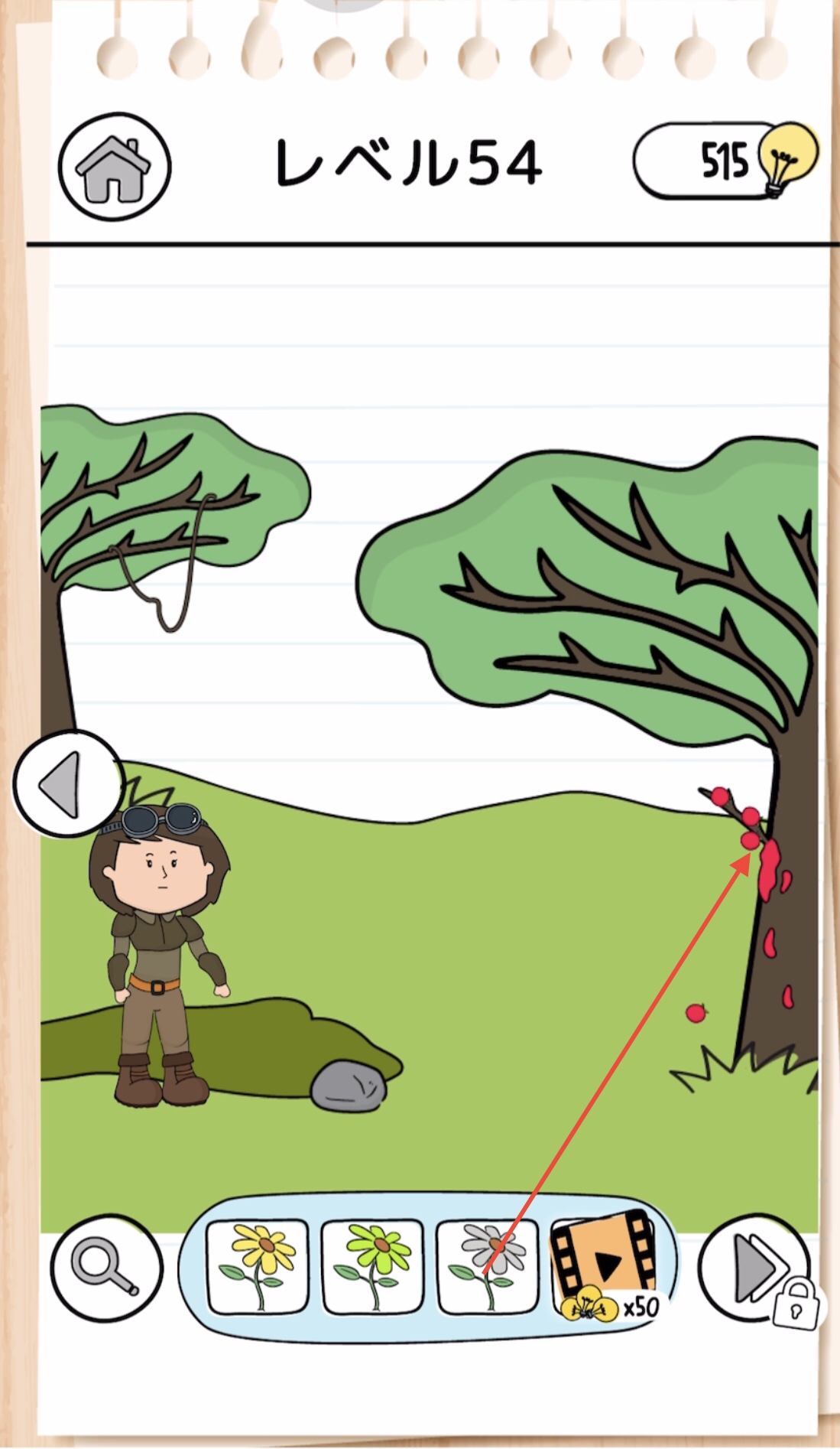 3つの花をタップして回収する