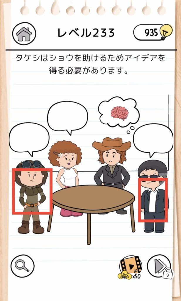 解答:ユキとエージェント中島をタップして吹き出しに電球を出す