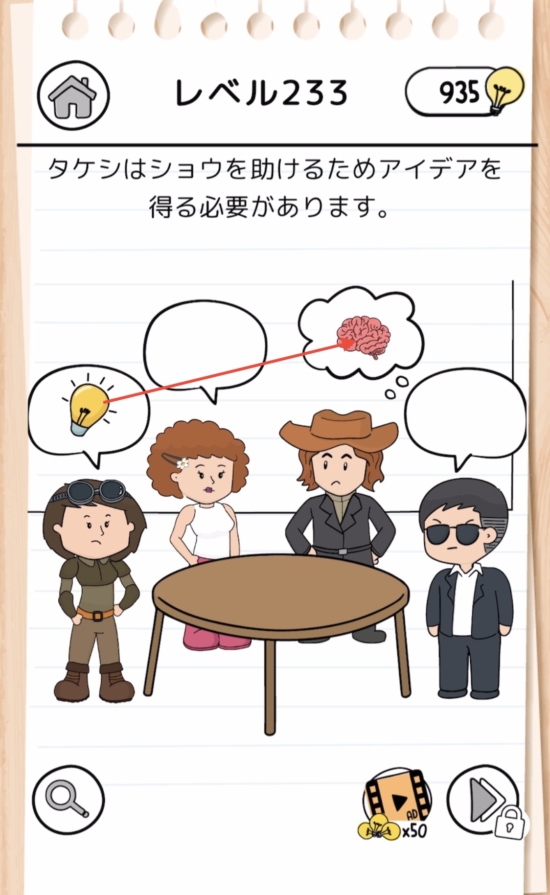 それぞれの電球をタケシの吹き出し(脳)に持っていく
