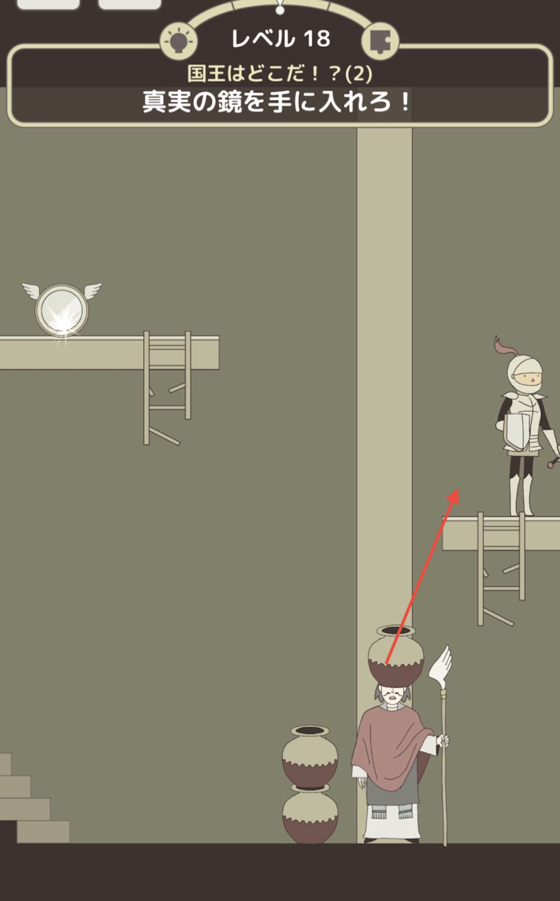 ツボを2つ積み上げ、大臣にツボを持たせた状態で騎士を移動させ右上の台に移動する
