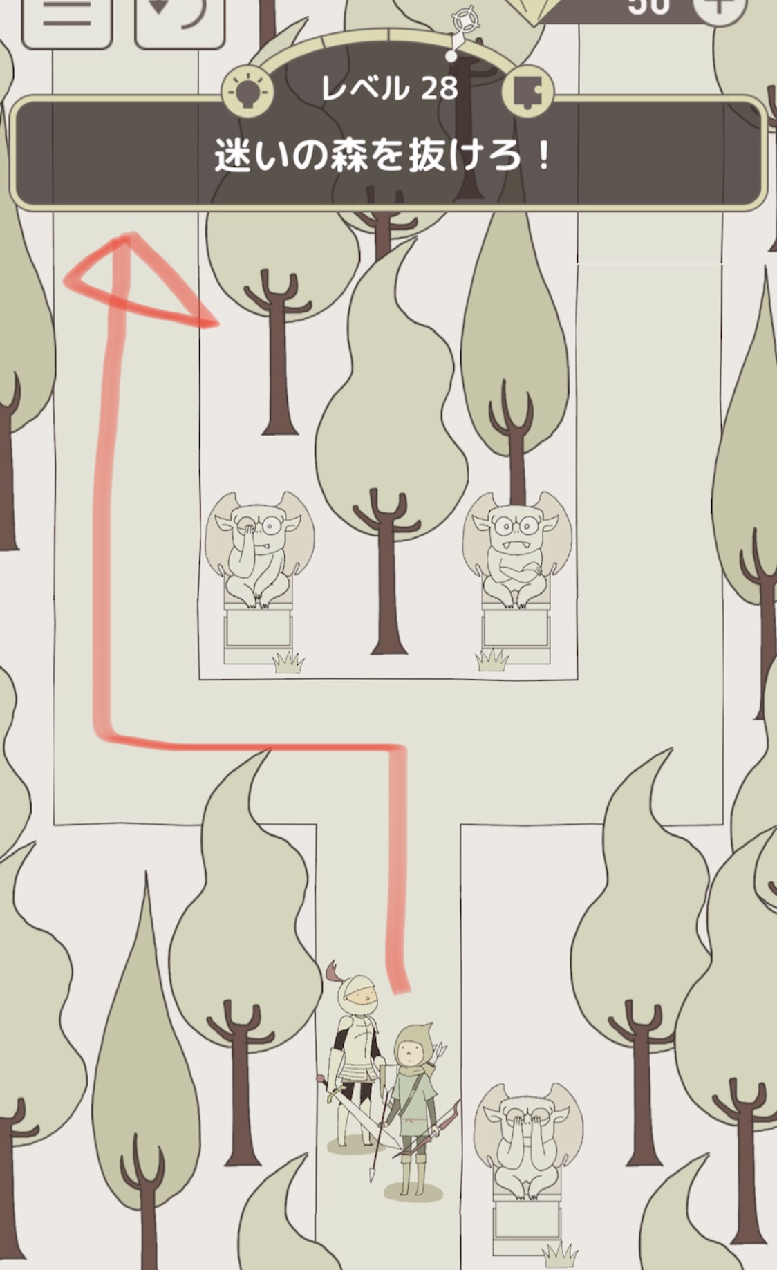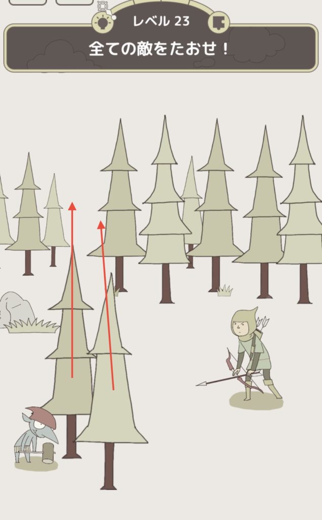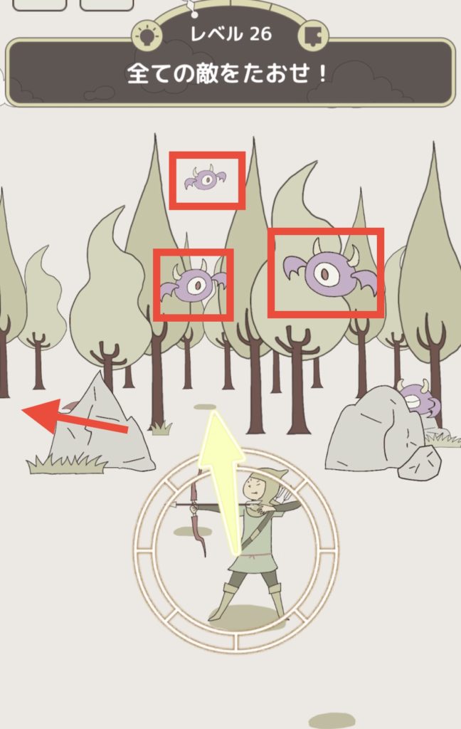 解答:飛んでいる敵を全て弓でやっつけ、左側の岩をスワイプでどれるとゴブリンが出てくる。(弓で全てやっつける)