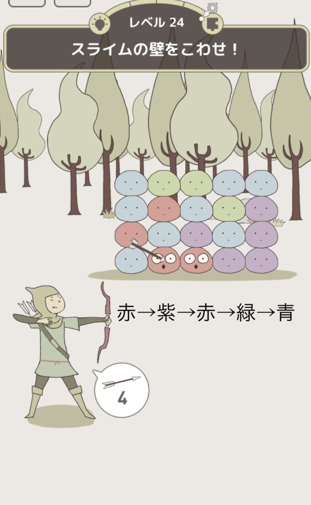 解答:「紫→赤→青」の順番でスライムをタップして消していく。