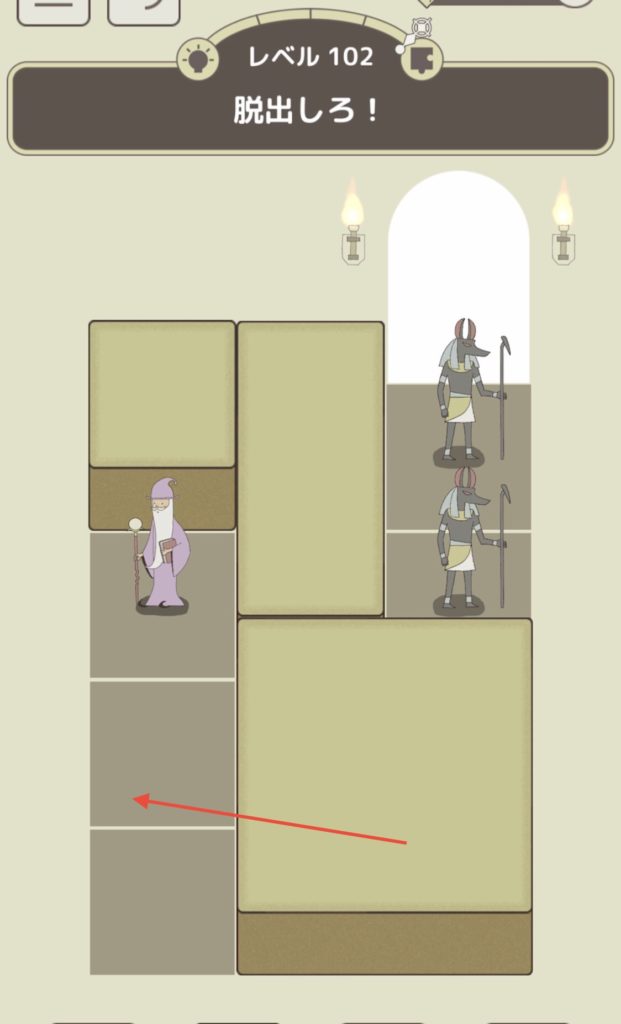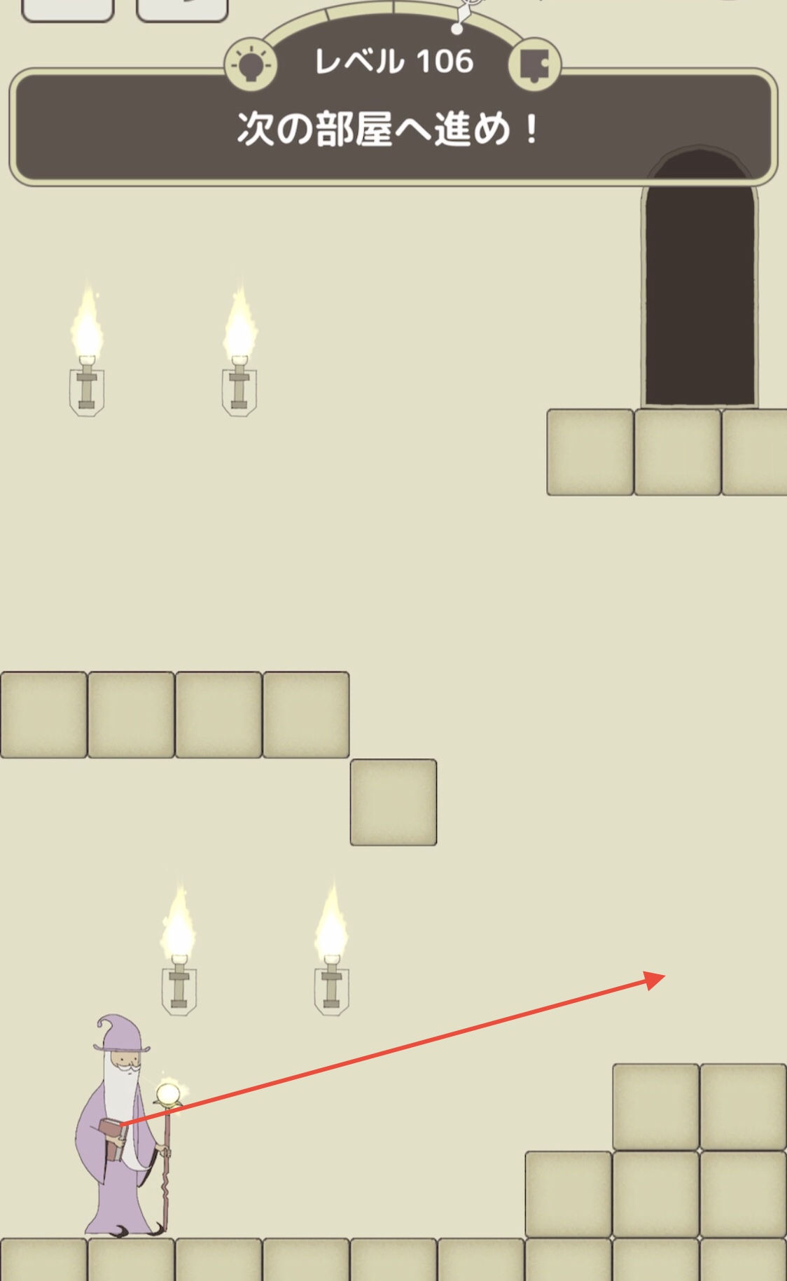 左側向かせて松明の炎から杖までスワイプで持っていく