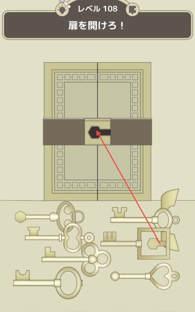 解答:右下から2番前の鍵をスワイプして持ち手部分をカギ穴に持っていく