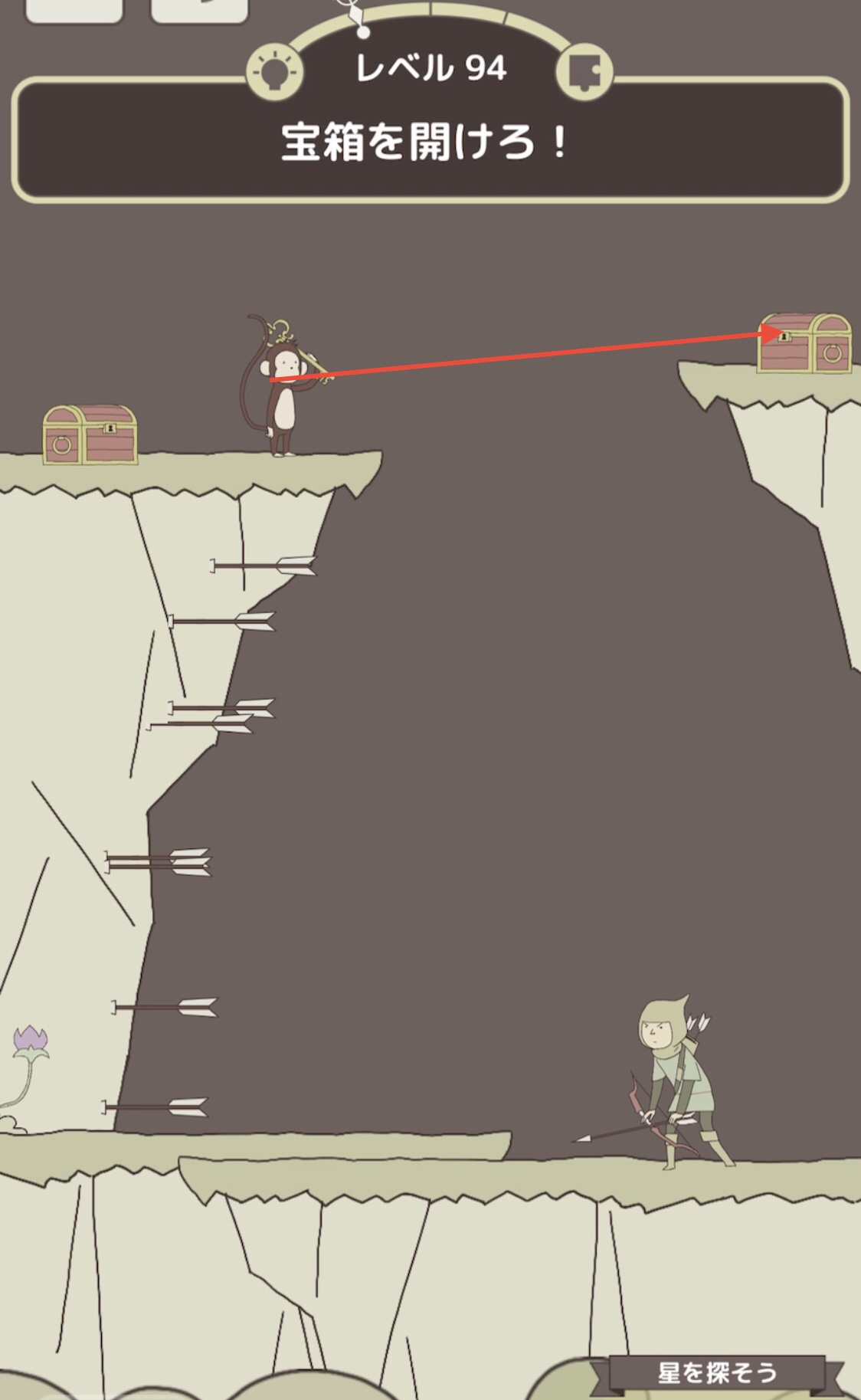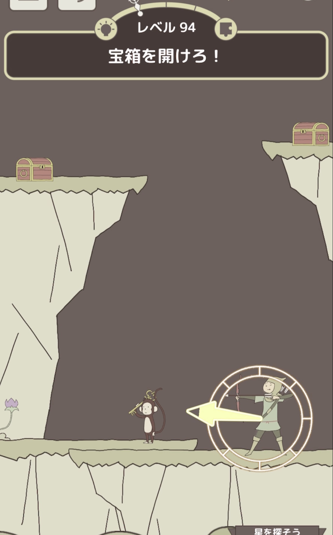 ぺぺの弓矢を引いて左上の星を撃ち抜く