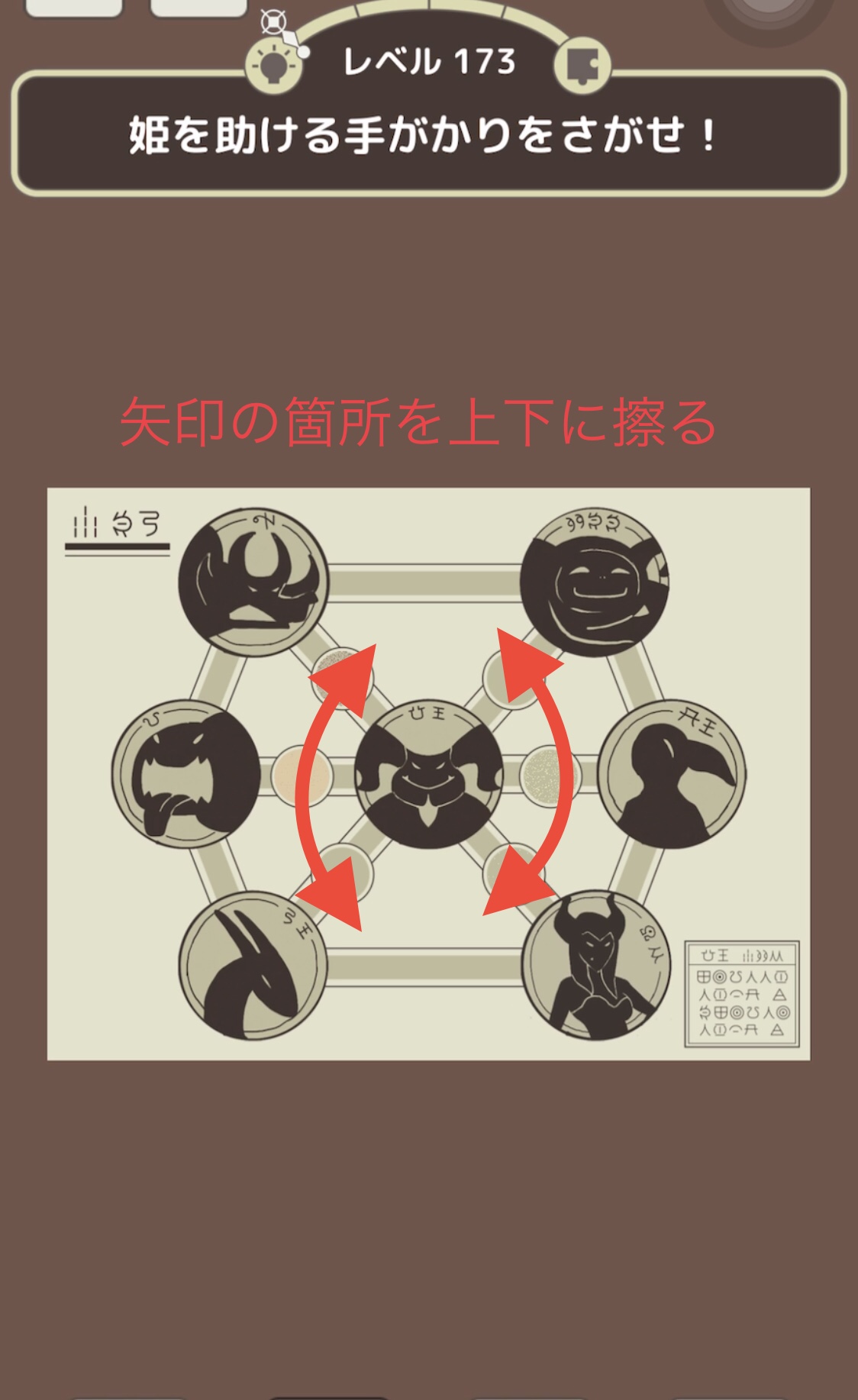 解答:王様が上を向いたら下矢印のアイコンをタップ