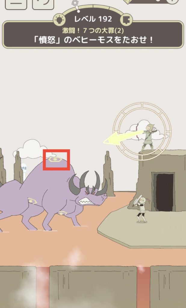 ベヒーモスが立ち上がったらお腹の円マークを弓矢で打つ