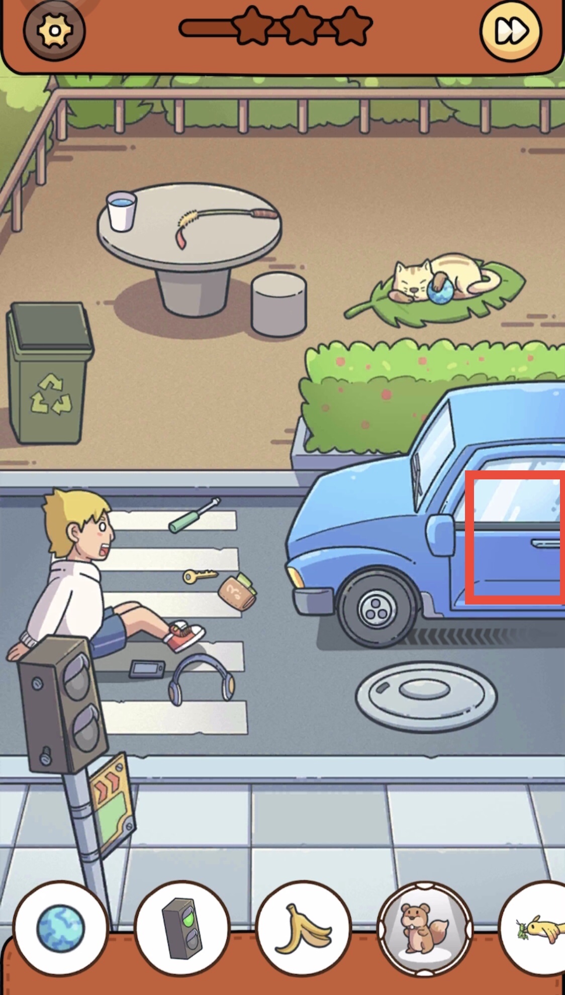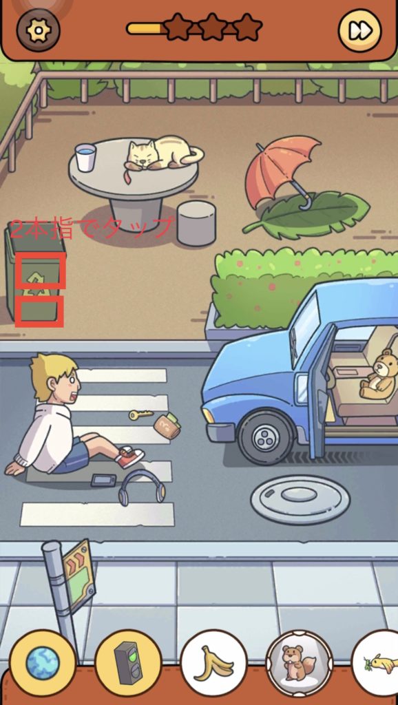 解答:車の中にある熊のぬいぐるみをタップして回収する