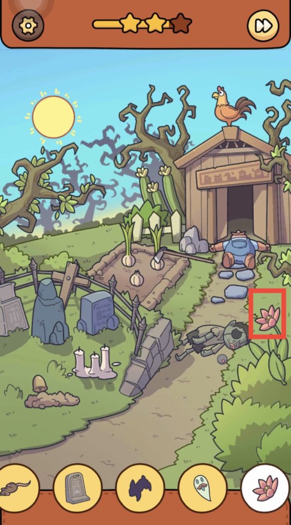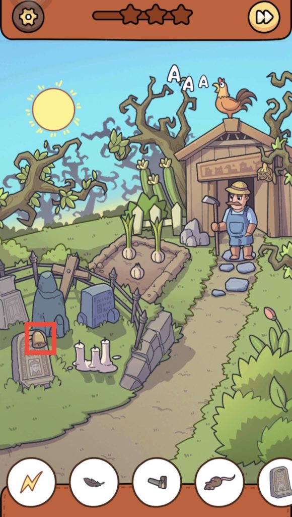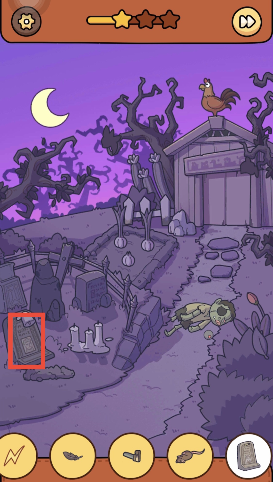 解答:倒れたゾンビの目玉部分にネズミのしっぽが見えるので上にスワイプする