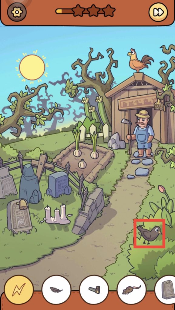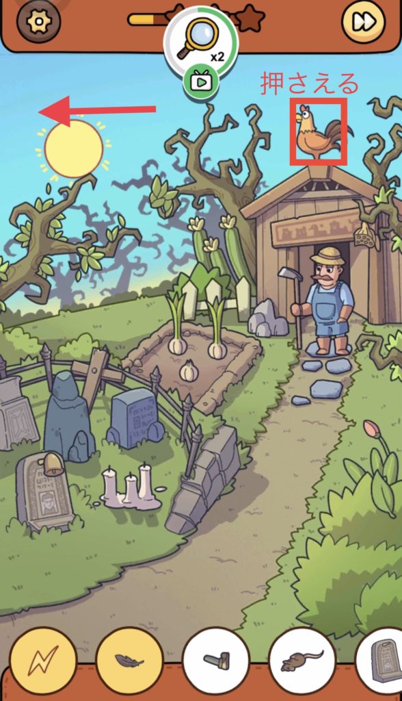 解答:鶏を指で押さえながらもう片方の指で太陽を右から左にスワイプする