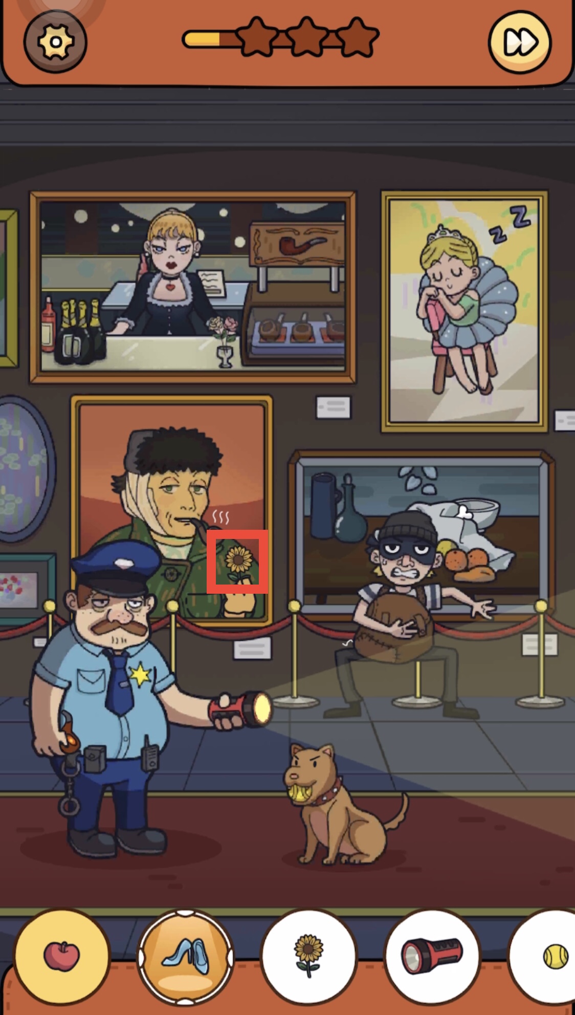 左下の絵画の男性がひまわりをくれるのでタップして回収する