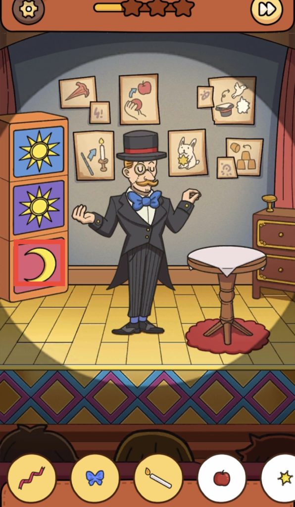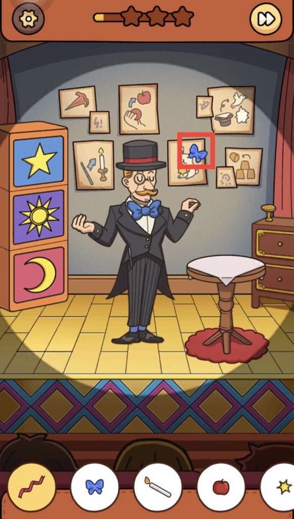 解答:マジシャンが着けている青い蝶ネクタイをタップする