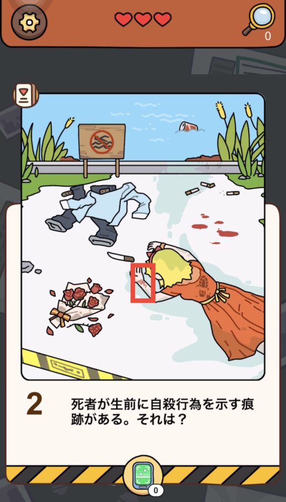 答え:地面に散らばっている血痕をタップする