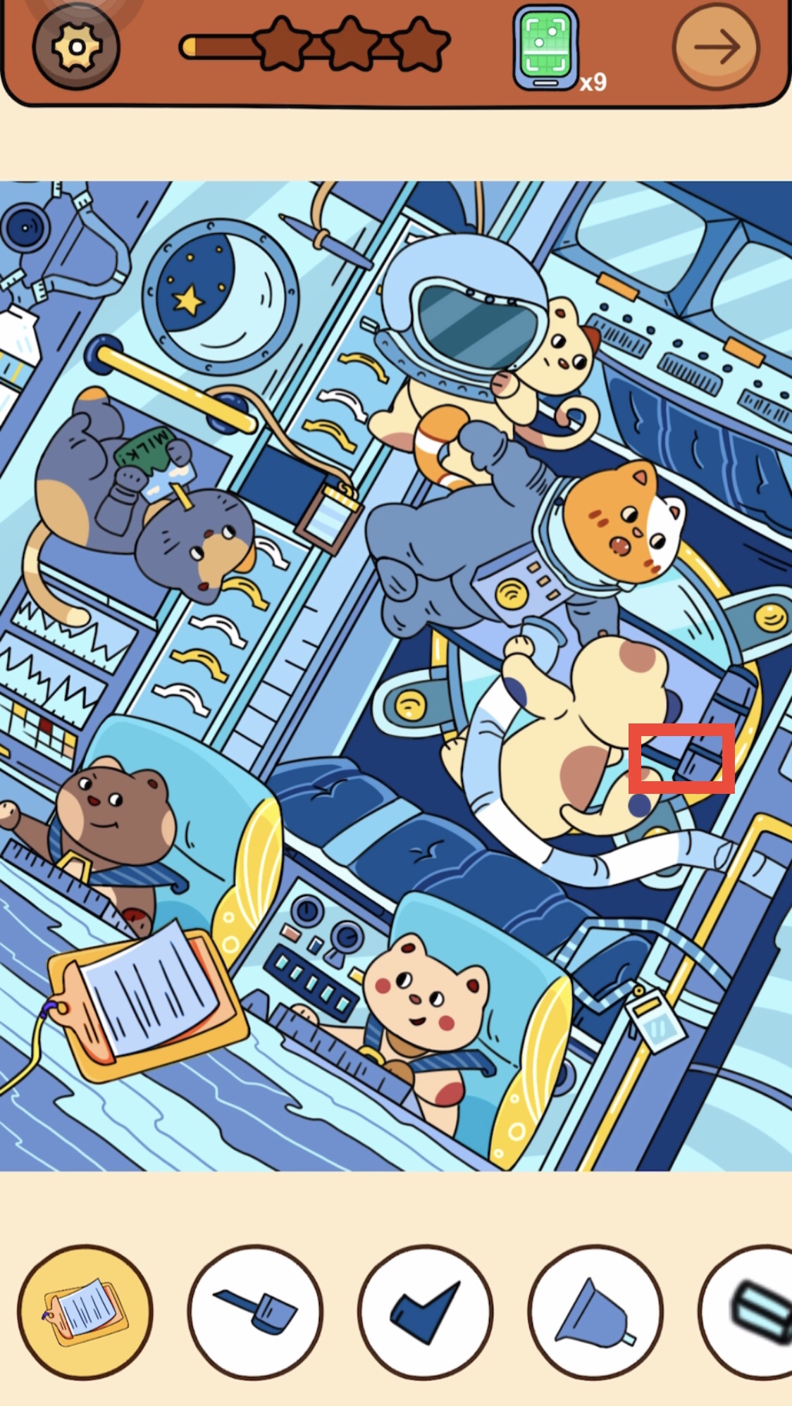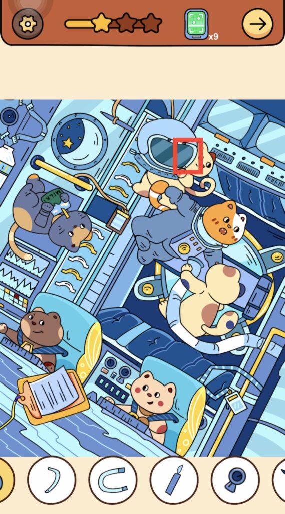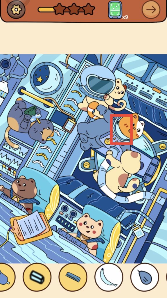 答え:操縦している2匹の猫の間に機械の一部として同化してるバッチをタップ