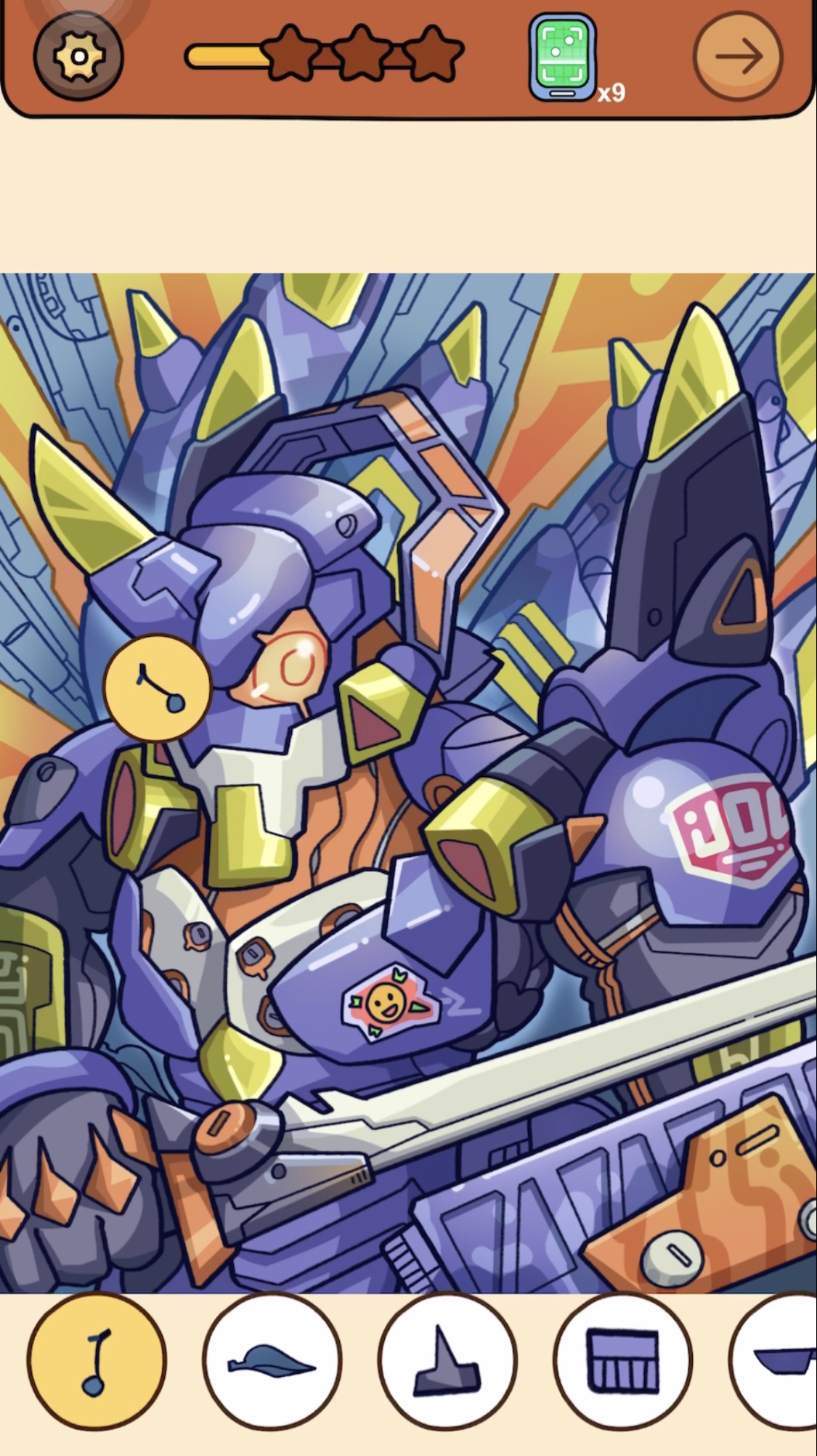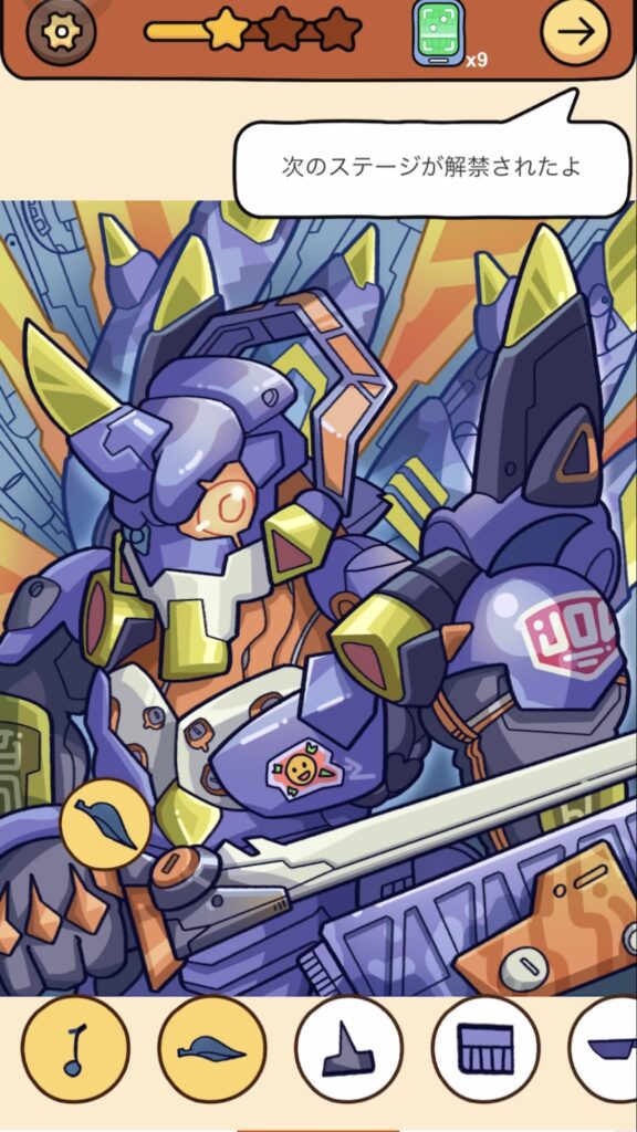 答え:ロボットの左目と同化している音符マークをタップ