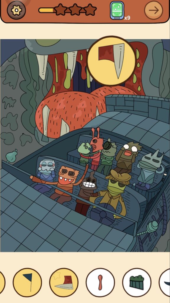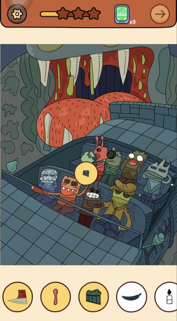 答え:運転手の横に座っているモンスターの歯と目の一部に同化しているロウソクをタップ