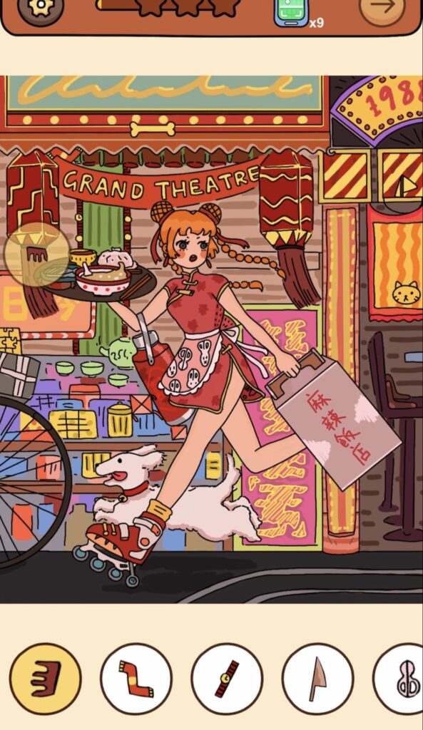 女の子の前掛けに同化しているハサミマークをタップ