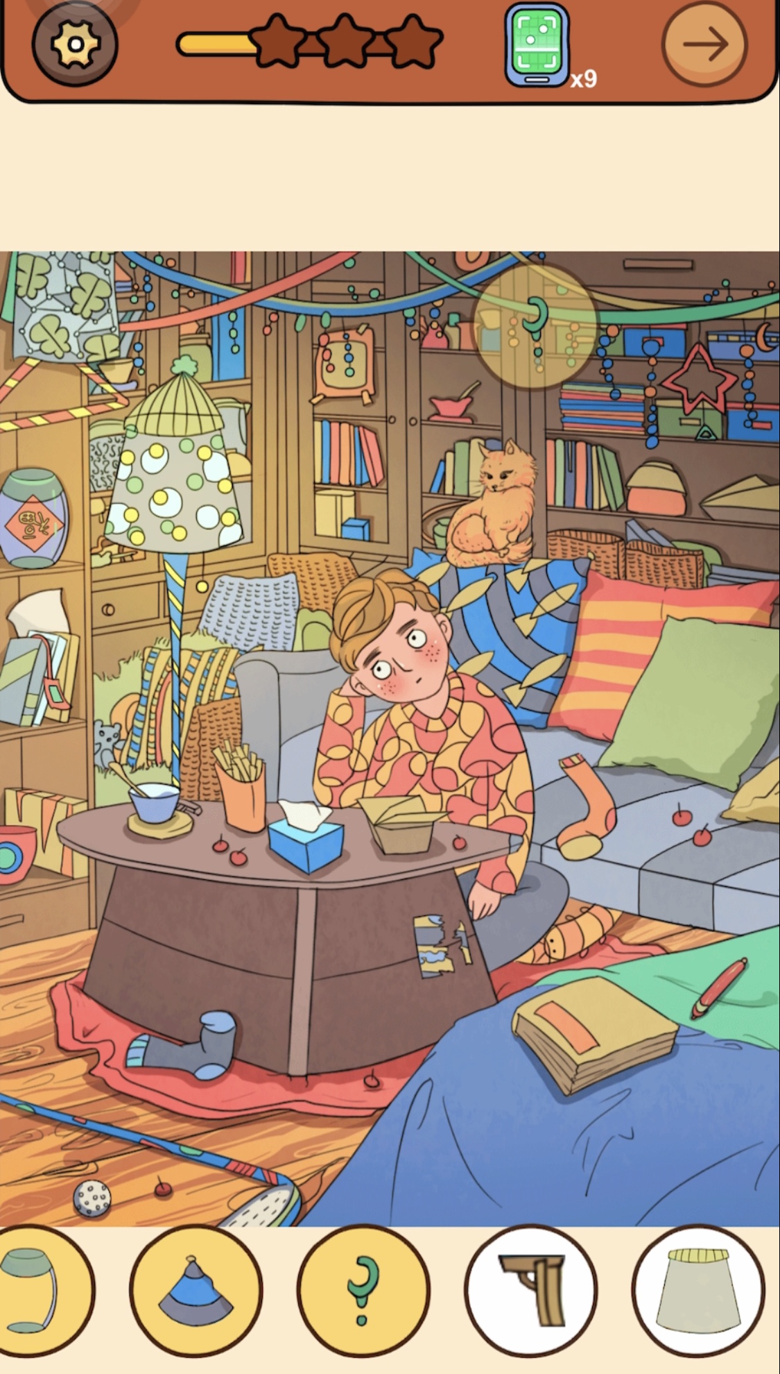 テーブルの上に乗っているランプと同化している服をタップ