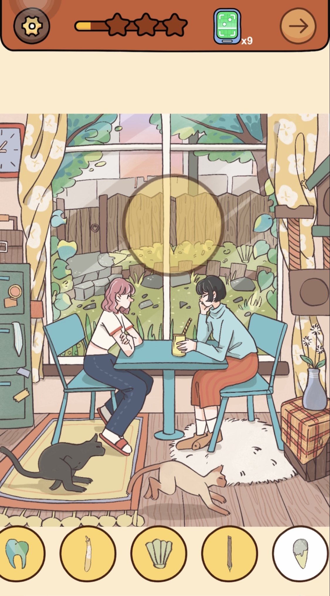 肌色の猫のしっぽ付近に同化している包丁をタップ
