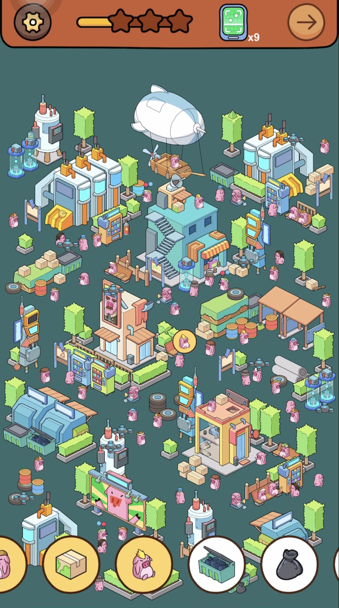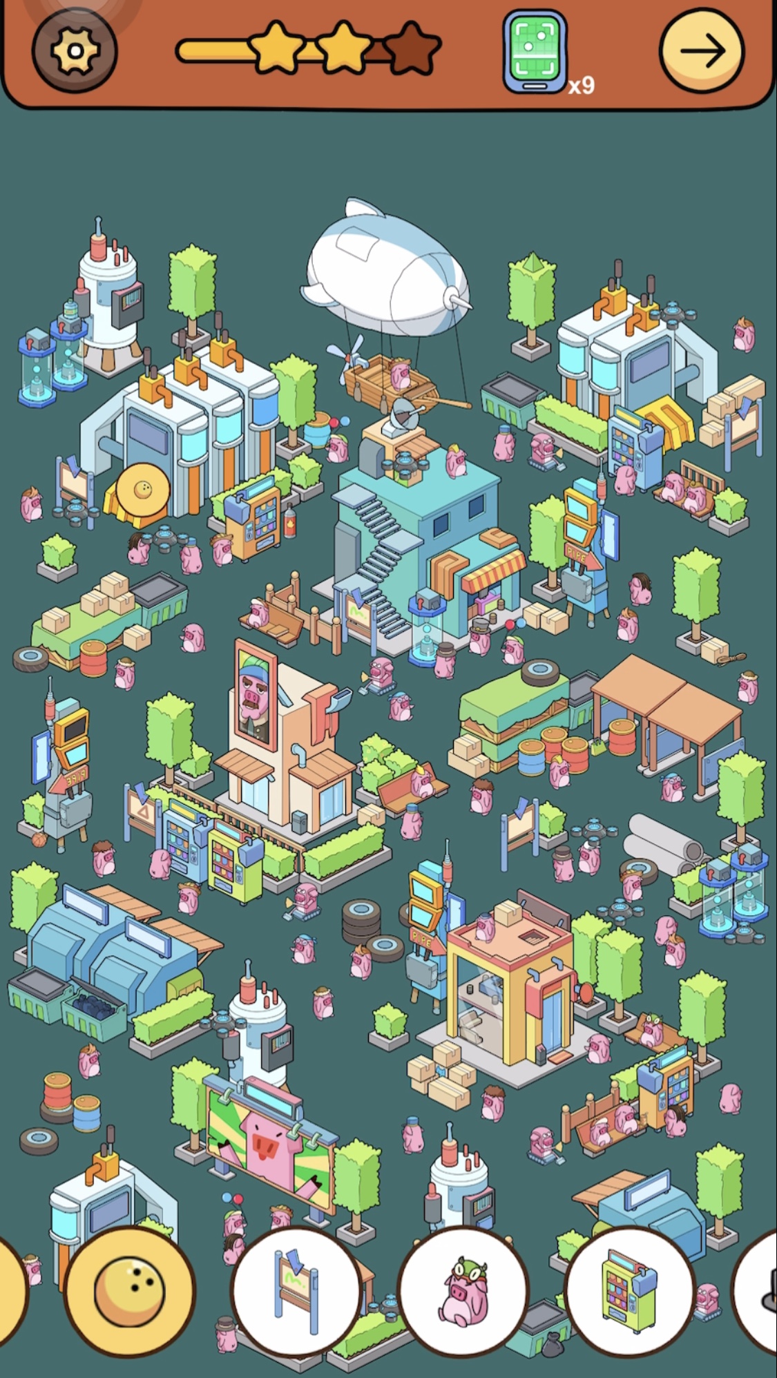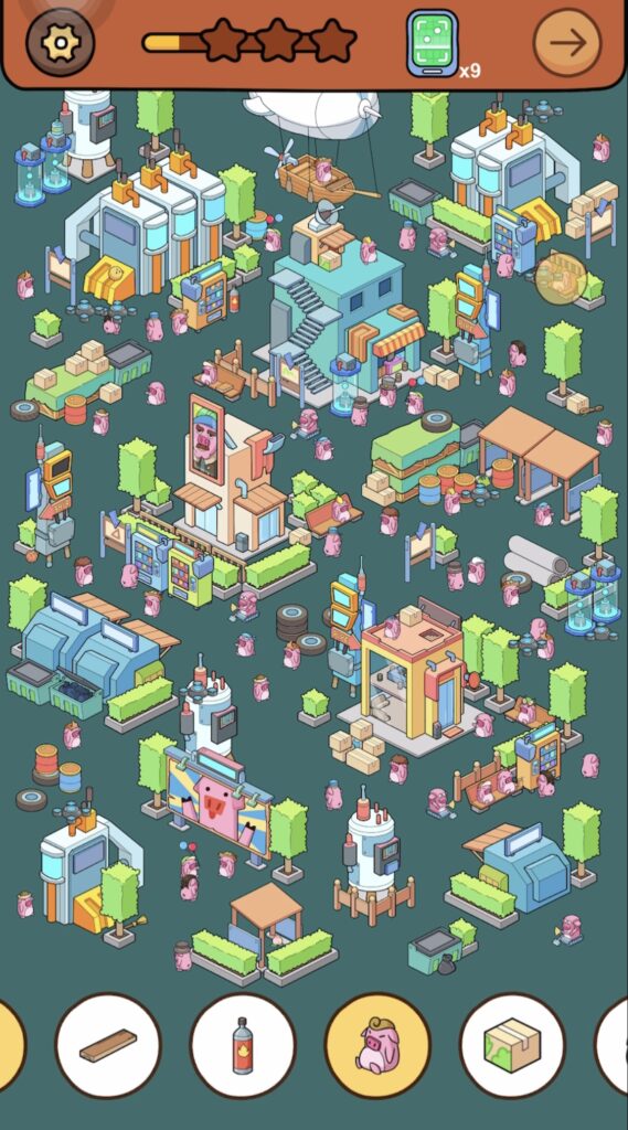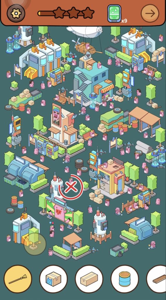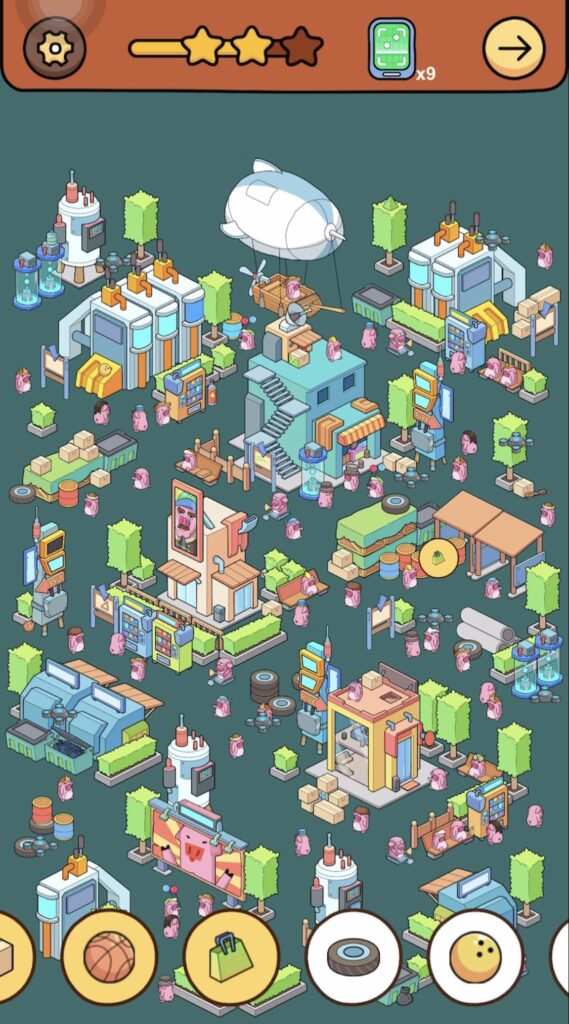 風船を持っているブタ付近に置いてある水色のタンクをタップ