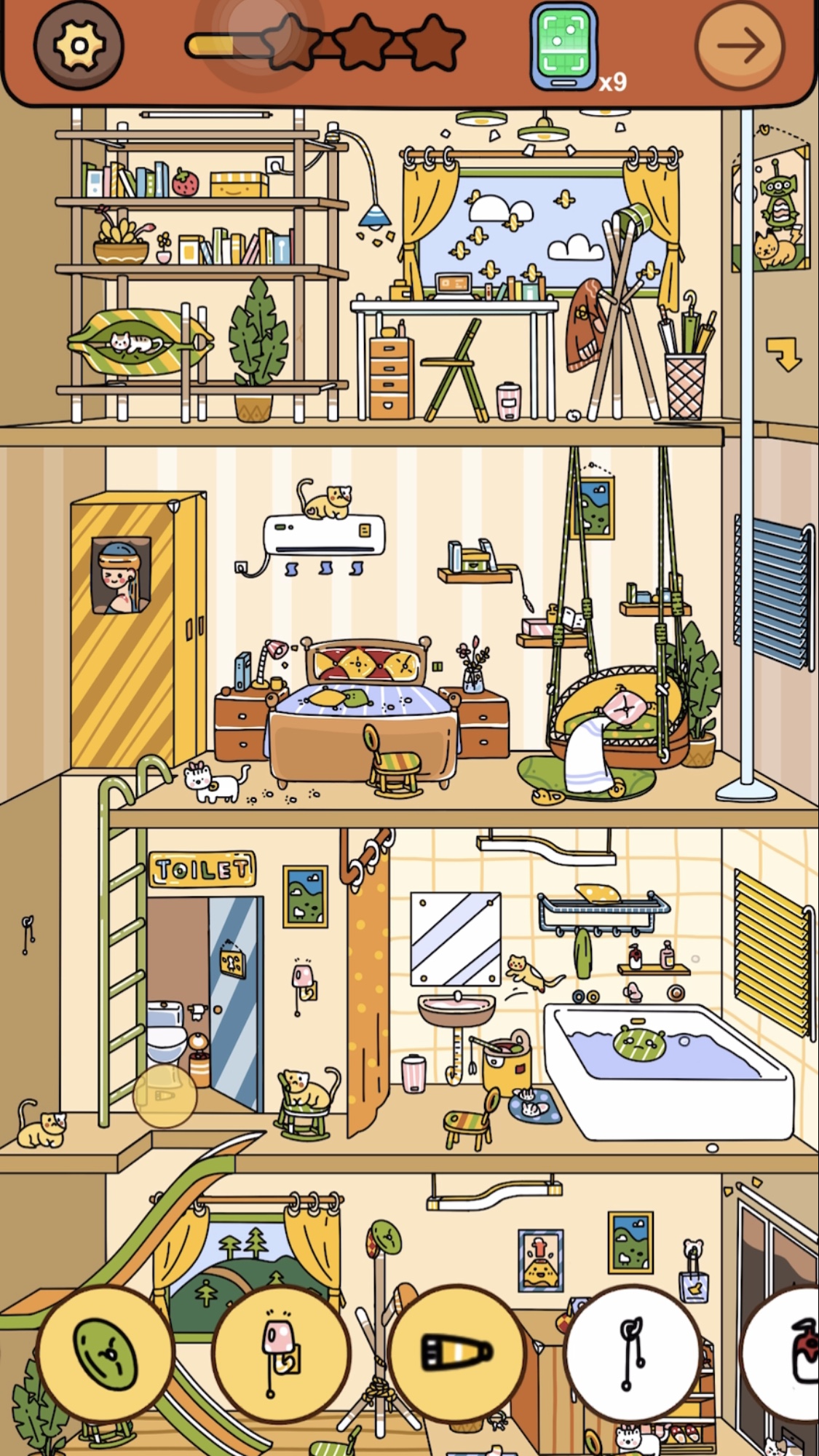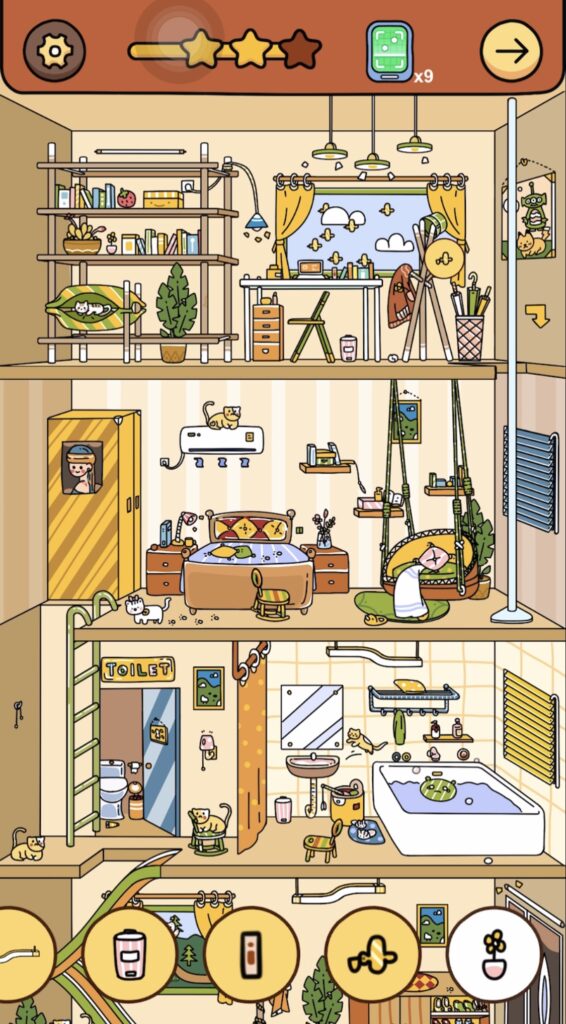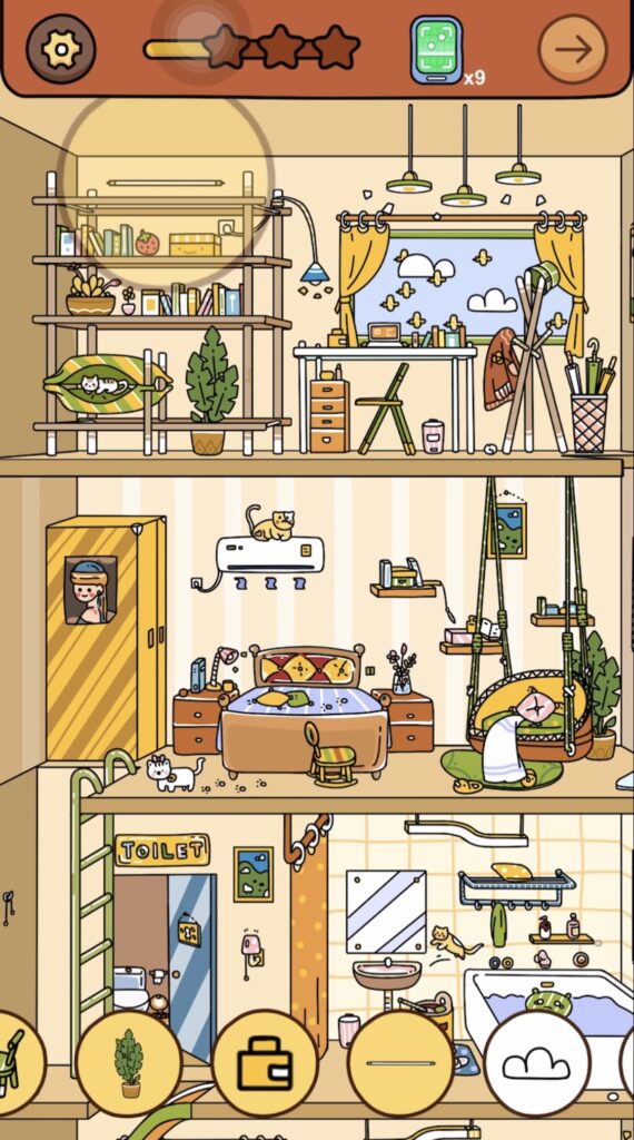 答え:フロア③のエアコンの上に乗っている猫をタップ